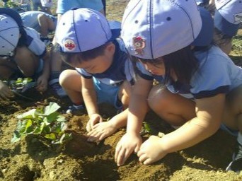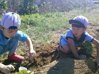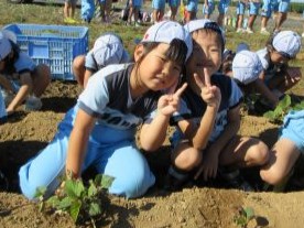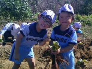 猛暑でおいもの成長が心配でしたが、土の中においもを見つけると嬉しそうな子どもたち♡